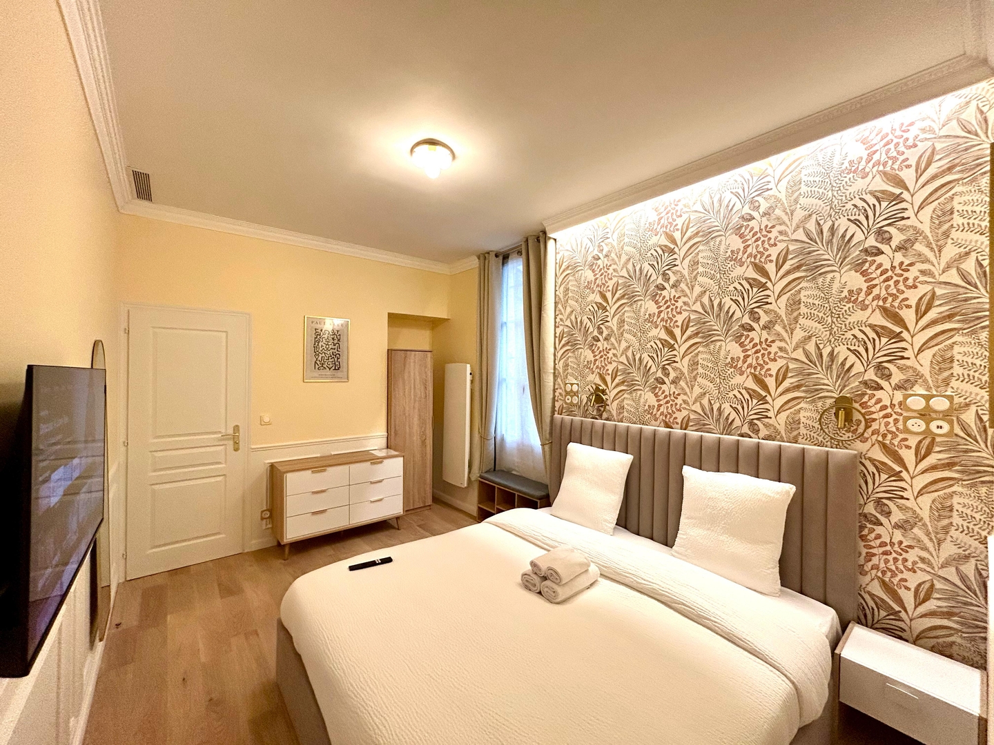 ➜ An elegant bedroom with a 180cm king-size bed, wardrobe.